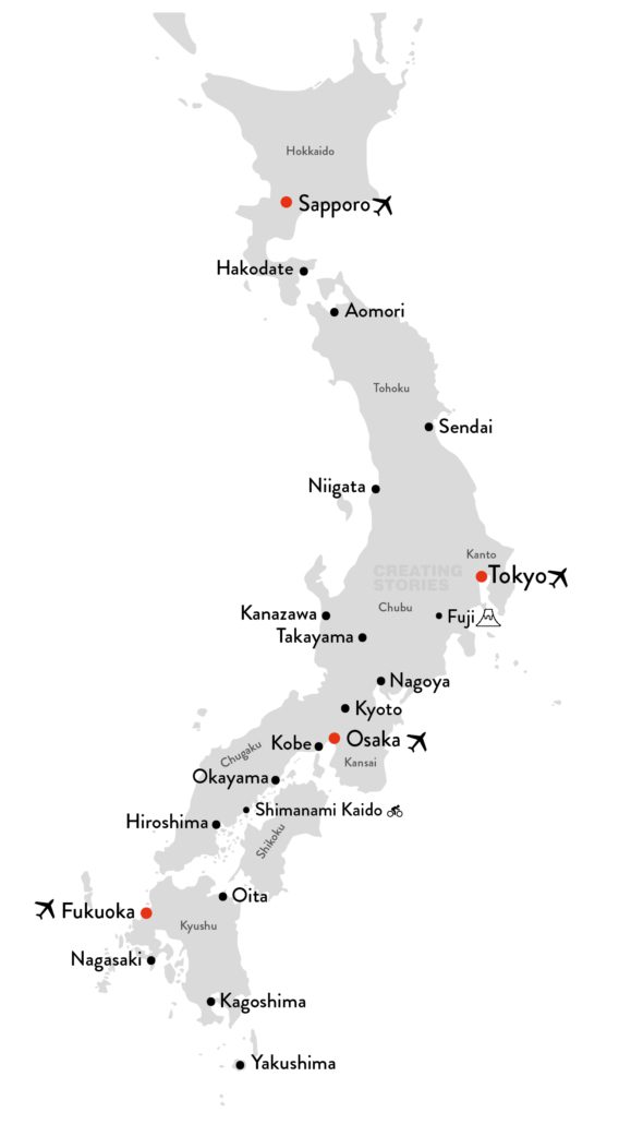 Heb je een specifieke route in gedachte, en behoefte aan advies? Of je weet het eigenlijk nog niet zo goed en ben je benieuwd naar de verschillende mogelijkheden? We helpen je graag. Samen stellen we jouw perfecte Japan reis samen, samen zijn we Creating Stories!