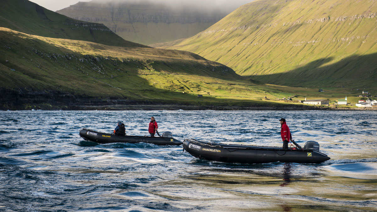 Drie dagen lang ontdek je de zuidelijke eilanden van de Færöer. Het landschap is overweldigend: steile kliffen, groene heuvels en zeevogels die massaal zijn teruggekeerd naar hun broedplaatsen.