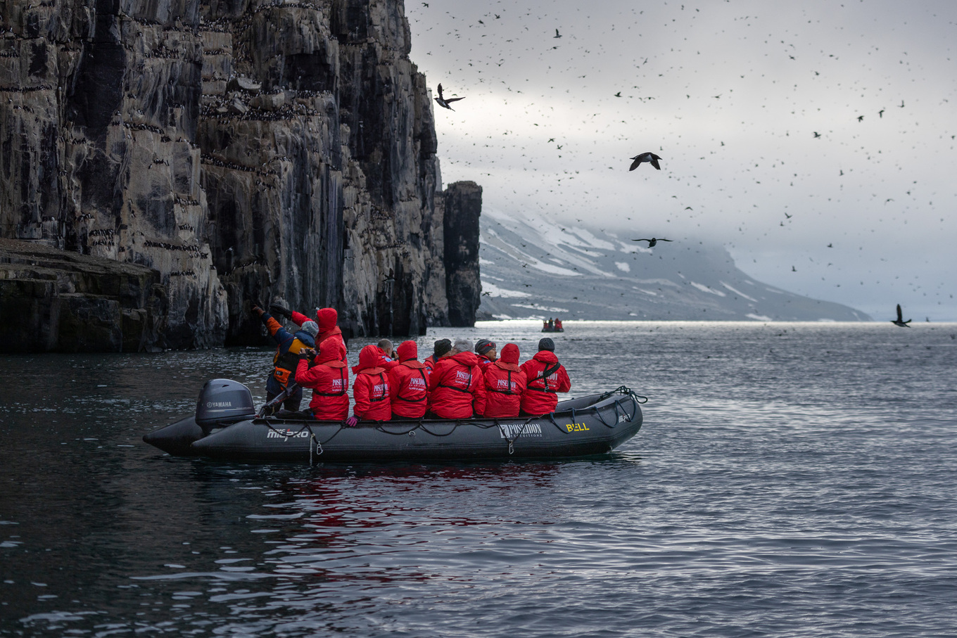 Bij Alkefjellet storten duizenden zeevogels zich vanaf de steile kliffen in zee. Brünnich’s zeekoeten, alken en drieteenmeeuwen nestelen hier op de smalle richels. Het is een waar wonder om te zien.