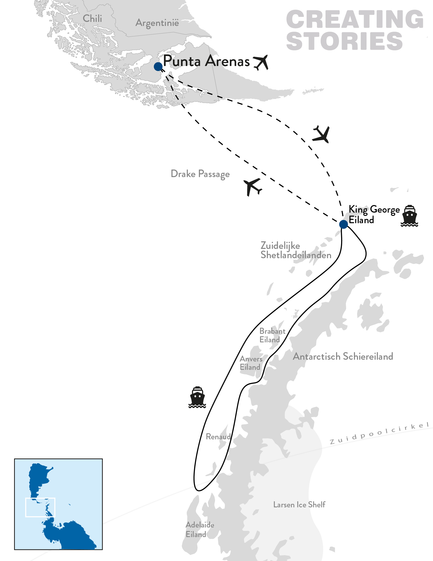 Het expeditieteam stelt de route samen op basis van ijs- en weersomstandigheden en flexibiliteit is essentieel. Geen dag in Antarctica is hetzelfde. Mogelijke bestemmingen zijn onder meer de Gerlache- en Penola Strait, het spectaculaire Crystal Sound en verborgen baaien vol ijs. Elke reis is zorgvuldig samengesteld en geeft je een onvergetelijk beeld van de immense schoonheid en diversiteit van het witte continent.