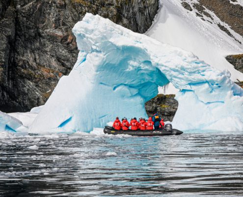 Na de open oceaan doemen de eerste ijsformaties op aan de horizon. Je bereikt de Zuidelijke Shetlandeilanden en vervolgens het Antarctisch Schiereiland: een wereld van ijs, stilte en verbluffende schoonheid. Bij gunstige weersomstandigheden maak je twee excursies per dag. Je vaart met Zodiacs tussen ijsschotsen, wandelt langs pinguïnkolonies en ziet zeehonden rusten op het ijs.