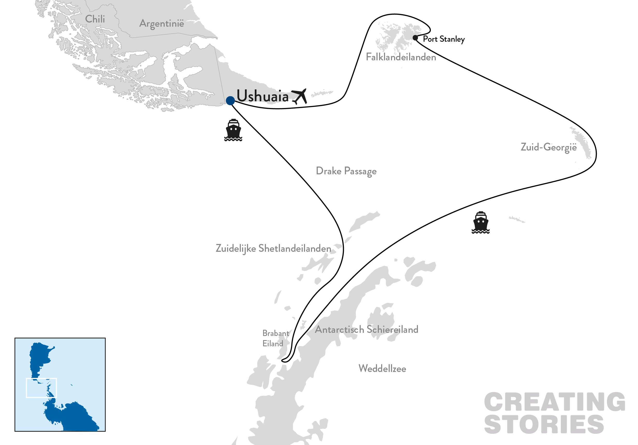 Antarctica onthult zich in al haar puurheid. Je vaart door smalle kanalen, omringd door torenhoge bergen en glinsterende gletsjers. In de Gerlachestraat drijven immense ijsbergen, terwijl je bultruggen en dwergvinvissen spot. Op de Zuidelijke Shetlandeilanden land je op Elephant Island, de plek waar Shackleton’s bemanning ooit standhield in de meest barre omstandigheden.