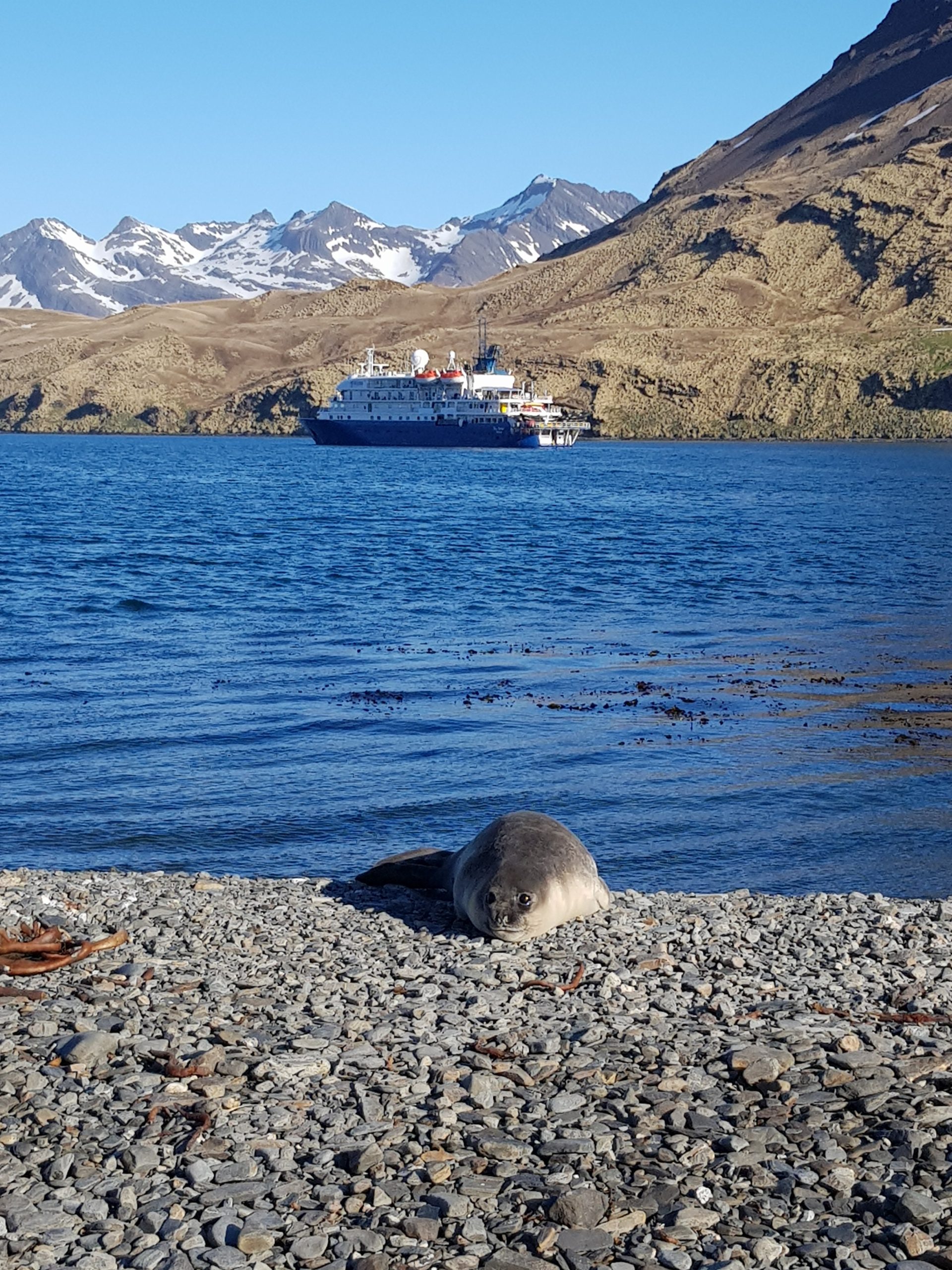 Langzaam doemt South Georgia op aan de horizon: een betoverend landschap van besneeuwde bergtoppen, gletsjers en ruige kusten vol dierenleven. Het weer is onvoorspelbaar en bepaalt de route, maar één ding is zeker – elke dag hier is onvergetelijk.