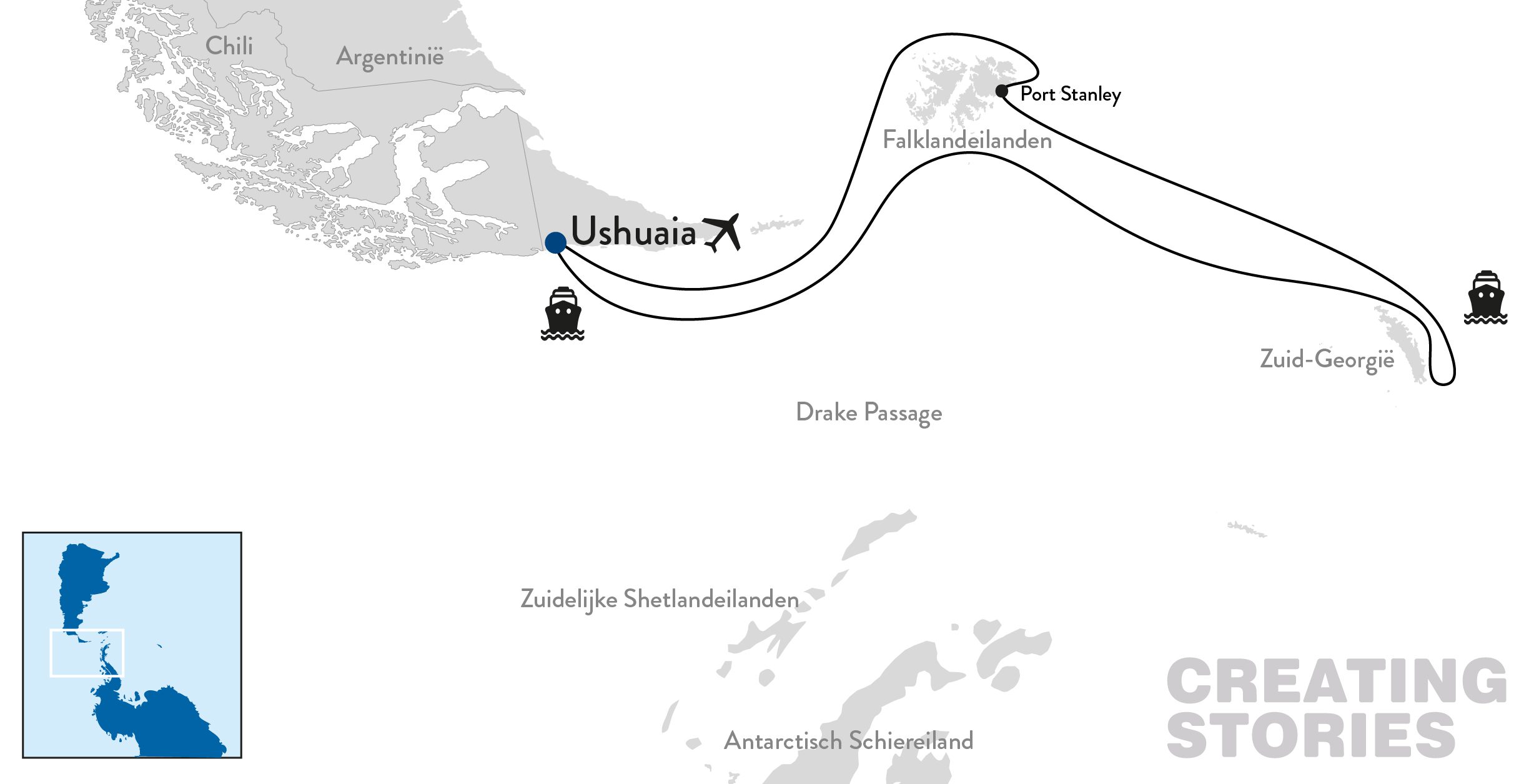 • Transfers naar het schip in Ushuaia
