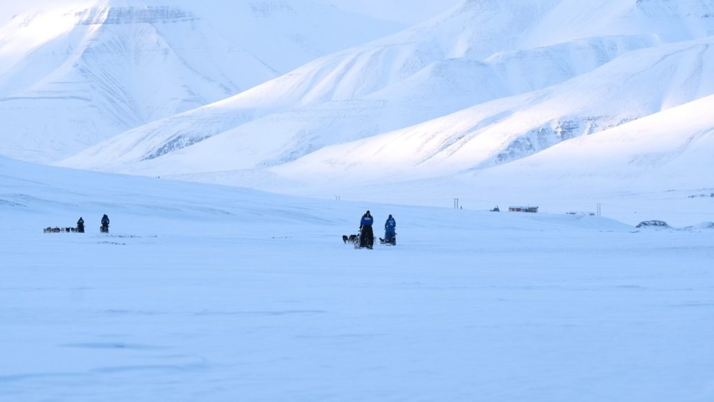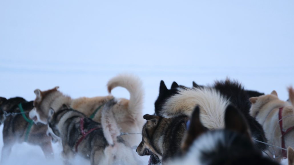 Bij Green Dog worden we warm onthaald, zo’n twintig kwispelende krachtpatsers staan in de startblokken om samen met ons de stilte en eenzaamheid aan te gaan. Onze sledes worden één voor één gespannen en zodra het startsignaal luidt, schieten we weg – de witte wildernis in. We passeren een enkele hut, een verlaten mijn. Hoe verder we komen, hoe meer we vertragen. We laten de laatste bakens van menselijkheid achter, en verwelkomen opnieuw de stilte en eenzaamheid.