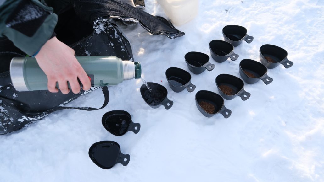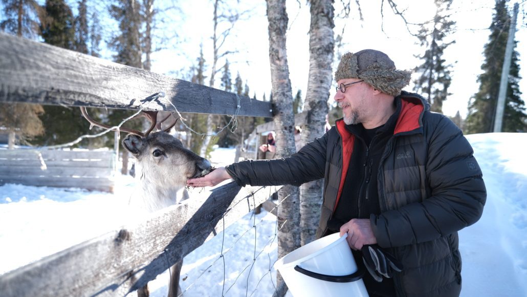 Dezelfde avond eet ik arctic char met aardappelpuree, rechtstreeks van het haardvuur in de kota, een traditionele Finse blokhut, gelegen op het terrein. Buiten is het kwik gedaald tot ver onder nul en bukken de takken van de berken langzaam onder het gewicht van de sneeuw.