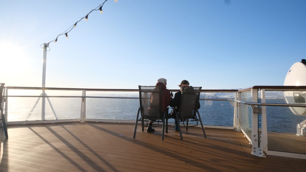 De Pollux is een schip dat voelt als een varende villa. In de lounge klikt een stel prijzige parka’s er met hun net zo prijzige camera’s op los. In het restaurant serveert de chef vers gevangen zalm in een schuimende zee van duindoorn.