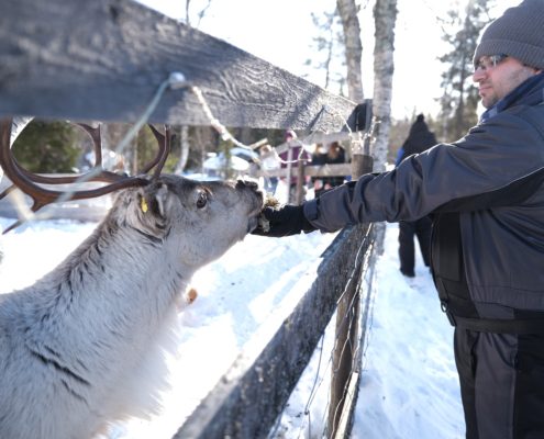 Je zal een bezoekje brengen aan een rendieren boerderij. Hier maak je kennis met de rendier herder en de rendieren. Er zal een begeleide tour op de boerderij worden gegeven. Dit bezoek duurt ongeveer 1,5-2 uur.