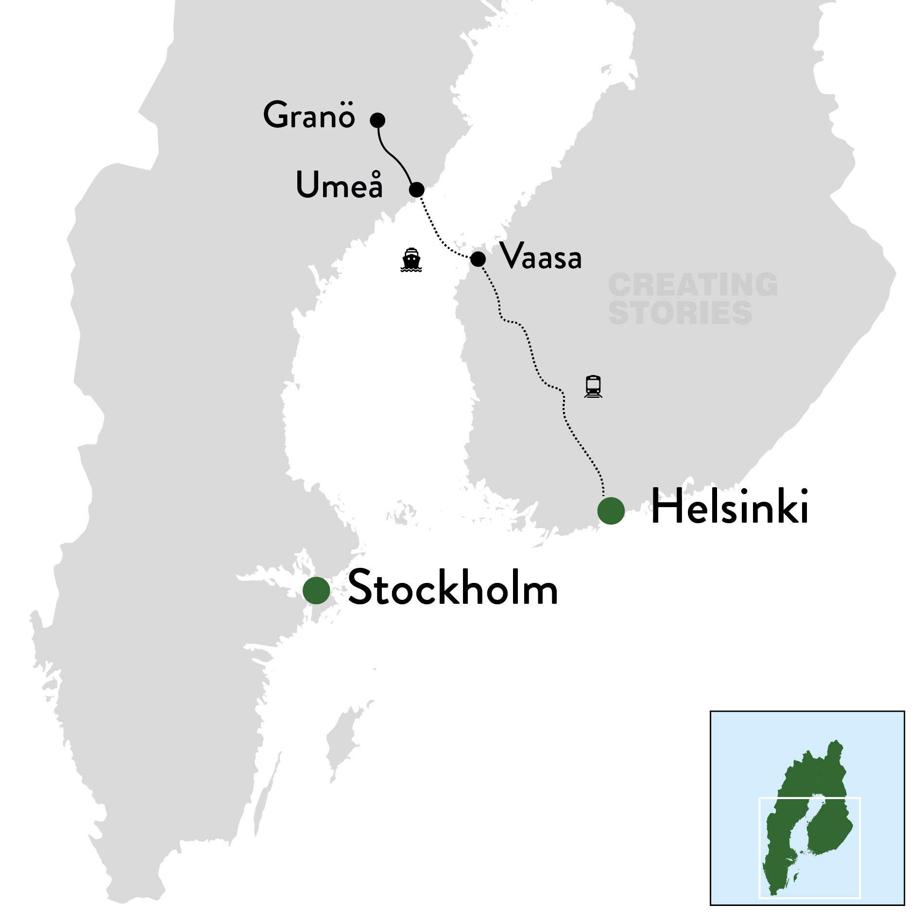 Ontdek alle hoogtepunten van Finland en Zweeds Lapland op de 7-daagse combinatiereis: Helsinki en husky's. Je doet niet alleen hoofdstad Helsinki aan, maar ook de mooiste plekken van het onontdekte Lapland, gelegen in de regio Västerbotten in Zweden. Bezoek in Helsinki fort Suomenlinna, eet in Vaasa de lekkerste zalmsoep in de gotische Markthal en ontdek het onontdekte Zweedse Lapland vanuit de boomtoppen in Granö. Reis afwisselend per trein, boot en privétransfers beide landen door. Hoogtepunten van deze reis: Combineer Finland en Zweeds Lapland Culinair genieten bij Granö Beckasin en slapen in je eigen ‘birds nest’ Grote kans om het noorderlicht te zien Een comfortabele treinreis door de ongerepte natuur van Finland Huskysledetocht door sneeuwwit Granö