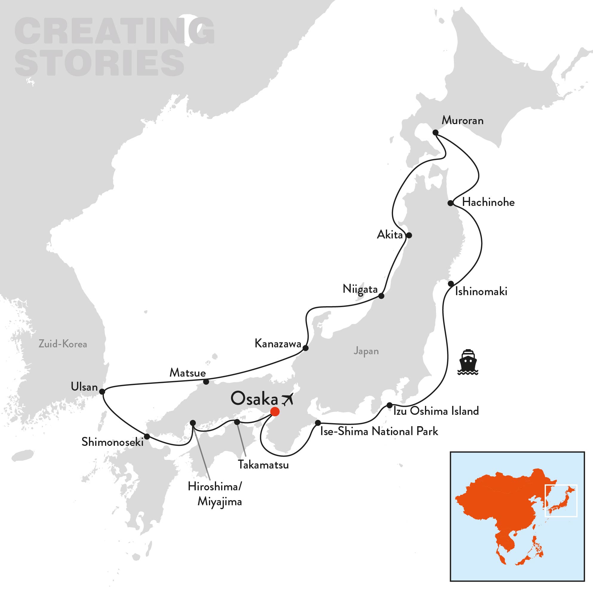 Geniet van een veelzijdige reis met veel afwisseling aan activiteiten. Tijdens deze cruise Japan doe je bijna alle regio’s van Japan aan. Je bezoekt de iconische Japanse zeezichten van Matsushima en Argo Bay en ontdekt de uniek planten, wilde dieren en wildernis wandelpaden op de UNESCO-eilanden Dogojima Island en Izu Oshima Island. Ook maak je een stop in Zuid-Korea waar je het UNESCO Werelderfgoed Gyeongju bezoekt. Laat je inspireren door deze unieke expeditiecruise vol bijzondere bestemmingen!