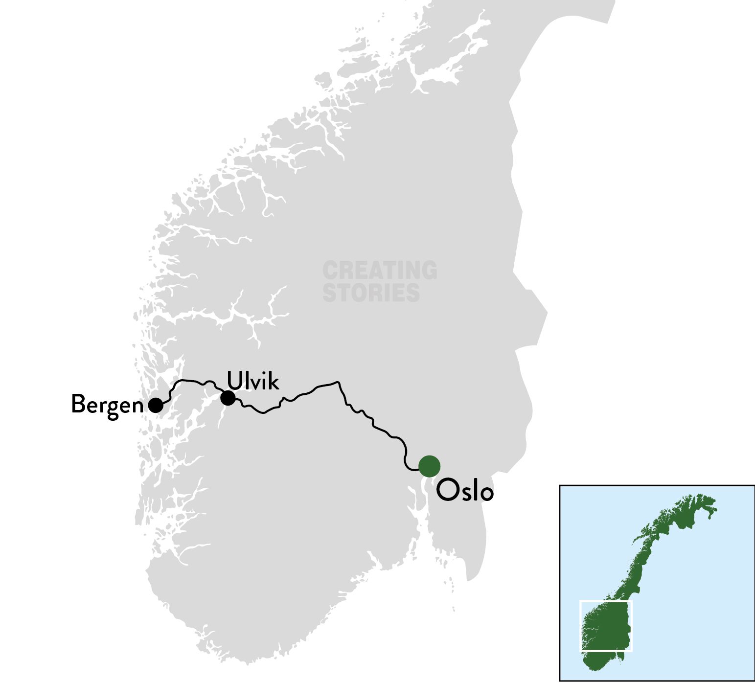 Reis Noorwegen: ontdek Zuid-Noorwegen met de Bergensbanen Onze 6-daagse reis Noorwegen in een notendop verbindt de voormalige hoofd- en Hanzestad Bergen met hoofdstad Oslo, gelegen aan de Oslofjord. Reis met de wereldberoemde Bergensbanen, ofwel Bergen Railway, door indrukwekkende landschappen en tussen reusachtige bergen door. De Bergensbanen is één van de meest bezochte spoorlijnen ter wereld. Het is niet alleen een bouwkundig meesterwerk, het is één van de mooiste treinreizen ter wereld. De koning van de fjorden, de Sognefjord, bereik je via de Flåm Railway. Per boot reis je door de Nærøyfjord, voordat je per bus en trein verder reist naar Bergen.