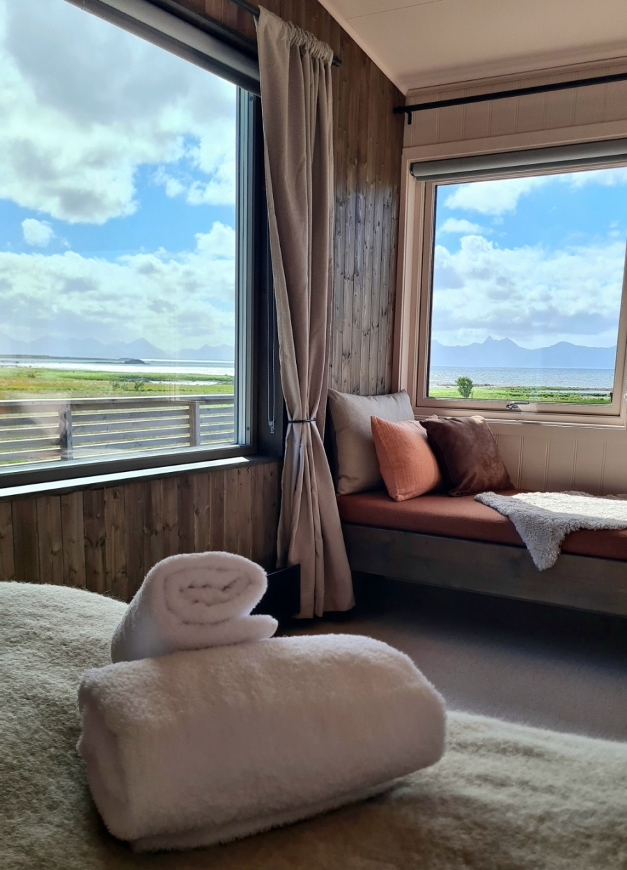 De komende twee nachten verblijf je in Marmelkroken, een kleinschalige lodge, gelegen langs de scenic route op Andøya. Hier komen zee, bergen en weides samen. Het uitzicht verandert hier met de seizoenen en de omgeving nodigt uit tot wandelen. Een oase van rust.