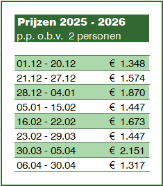 Prijzen 2025-2026: