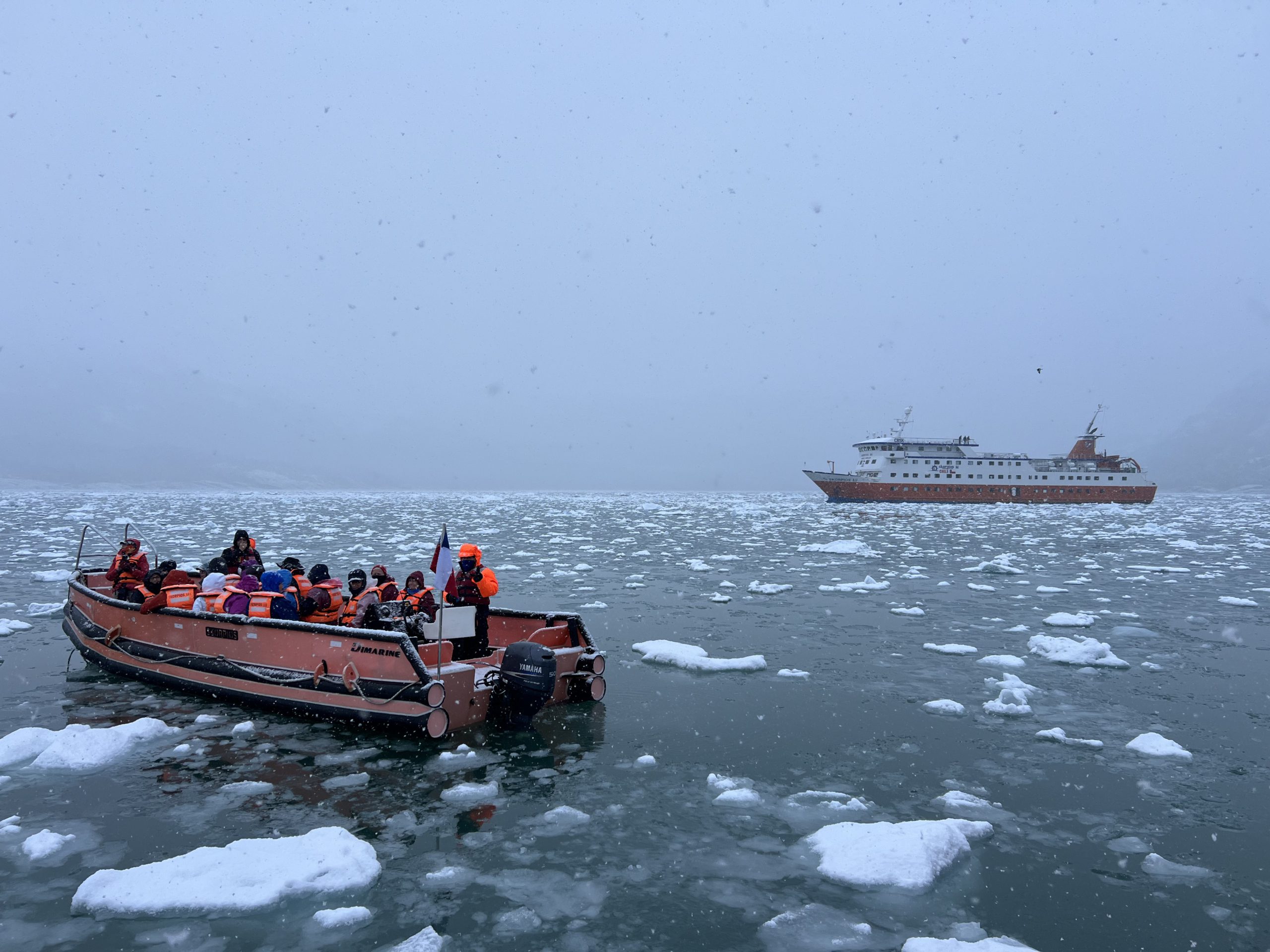In de ochtend arriveer je bij de El Brujo-gletsjer. Vanaf een nabijgelegen rots heb je een spectaculair uitzicht over het front van deze gletsjer. Later op de dag vaar je de Calvo-fjord binnen. Met een speciaal ijsversterkt expeditieschip maak je een excursie langs verschillende gletsjers, waaronder de Captain Constantino- en Alipio.