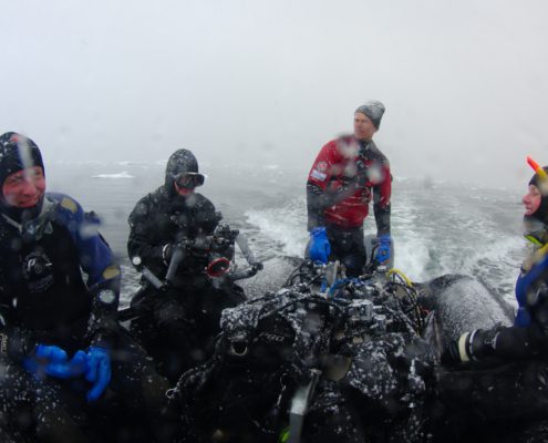 Het is verplicht om tijdens zodiaccruises en landingen rubberlaarzen (inclusief), wind- en waterdichte jas (inclusief bij Poseidon Expeditions), zwemvest en regenbroek aan te hebben.